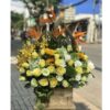 Với các loại hoa tươi tiêu biểu như: Đồng tiền, thiên điểu, hoa mõm sói, hướng dương, hoa lan thái trắng – tím, hoa lan hồ điệp, hoa hồng các màu … Tuy đơn giản nhưng tạo nên những kệ/lẵng hoa chúc mừng đẹp và tinh tế là những gì mà chúng tôi shop mong muốn mang đến cho khách hàng thân yêu