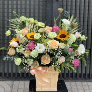 Sản phẩm Hoa tươi thành phẩm có thể gần giống với mẫu 95% - tùy thuộc vào cảm nhận của khách hàng vì là sản phẩm thủ công".